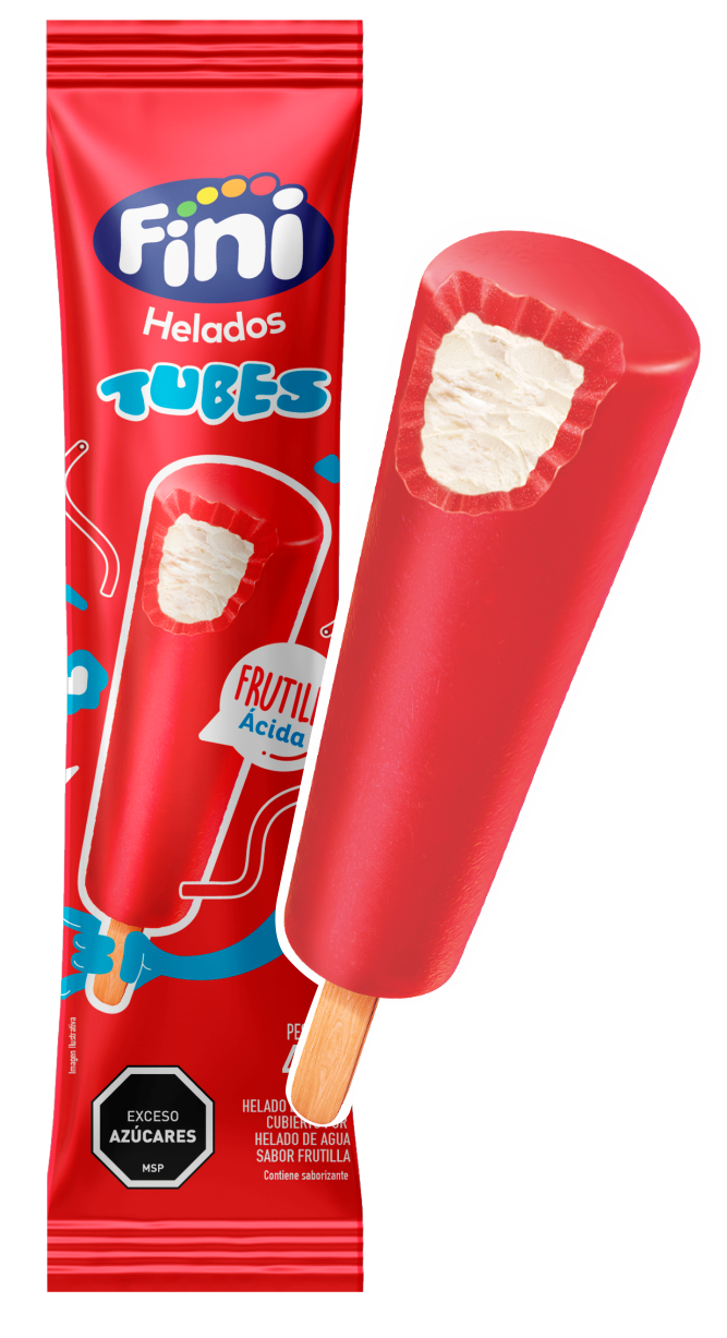 Helado de crema cubierto por helado de agua sabor frutilla